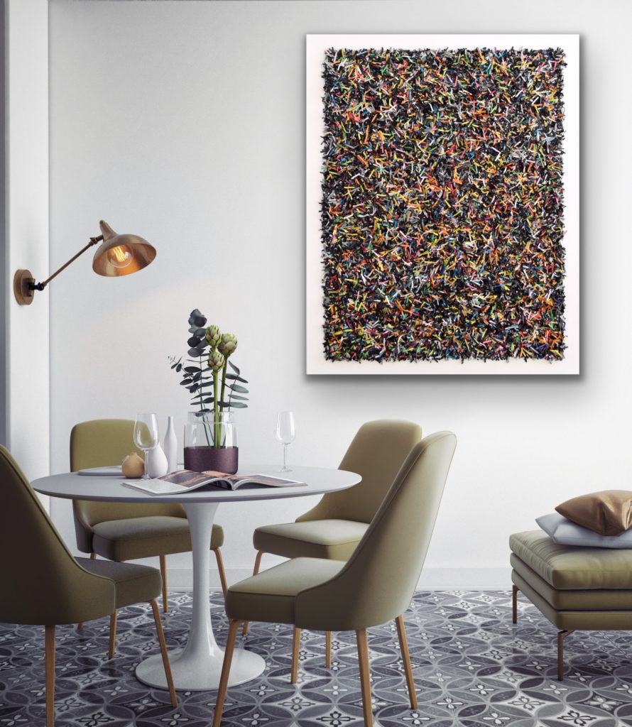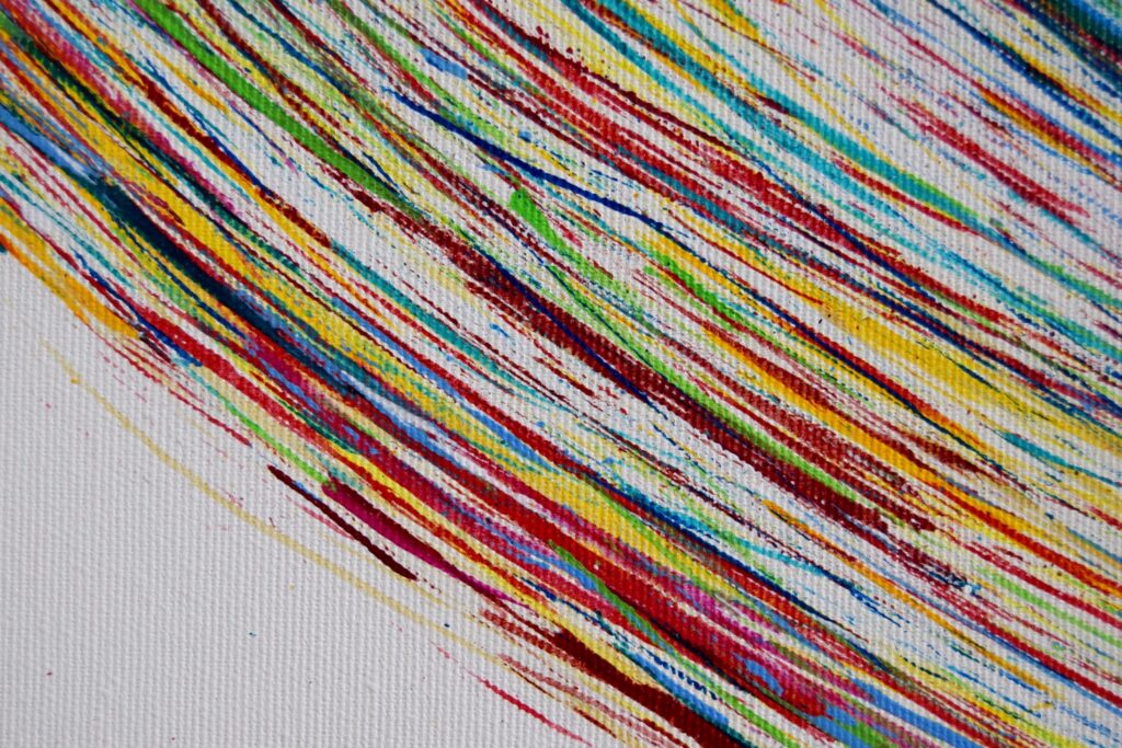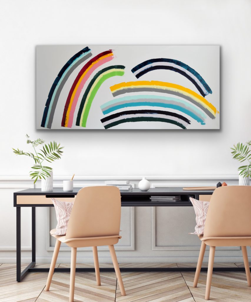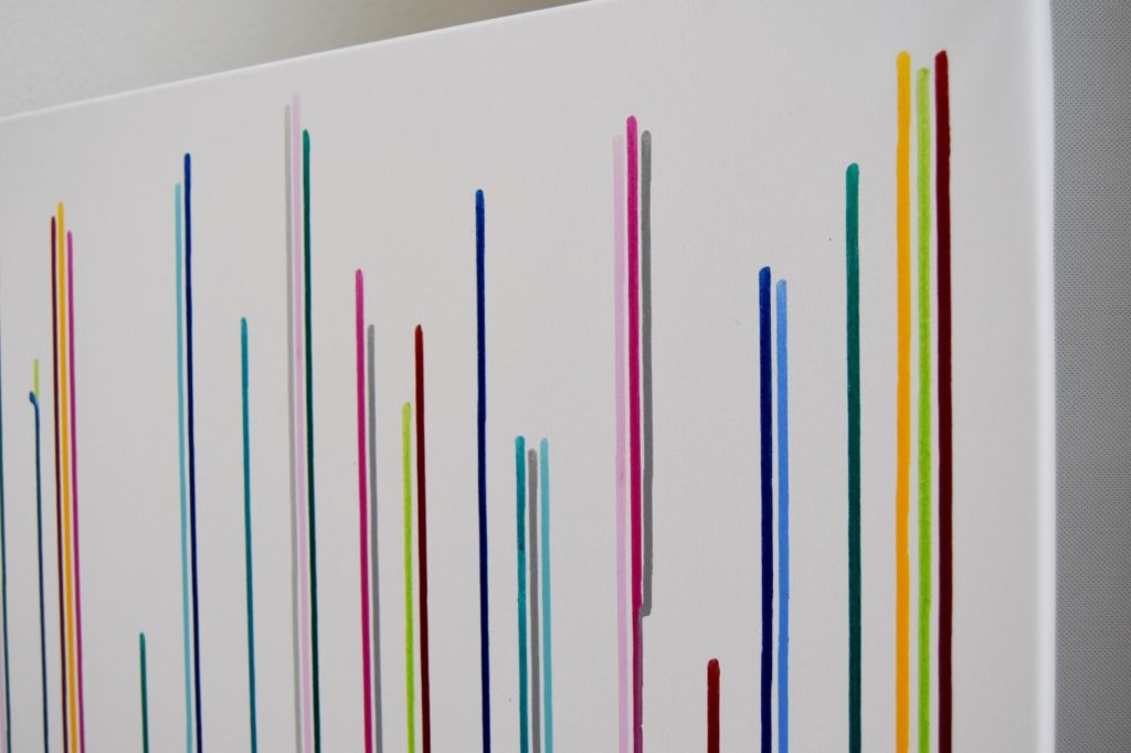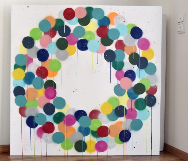 My inspiration: I’m obsessed with bold and powerful colors arranged in common geometric shapes. That’s me – clear and structured at work, but also always creative, curious, passionate, and a bit imperfect. I’m inspired by the color itself and adore its purity. Every individual color gets my undivided attention. My works are painted color by color. In this way, I fill the canvas step by step with dynamic vitality and structure.