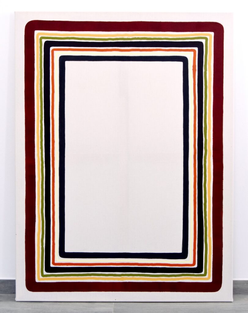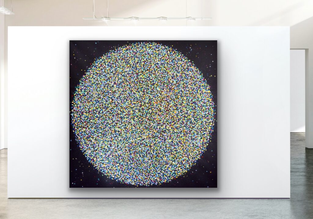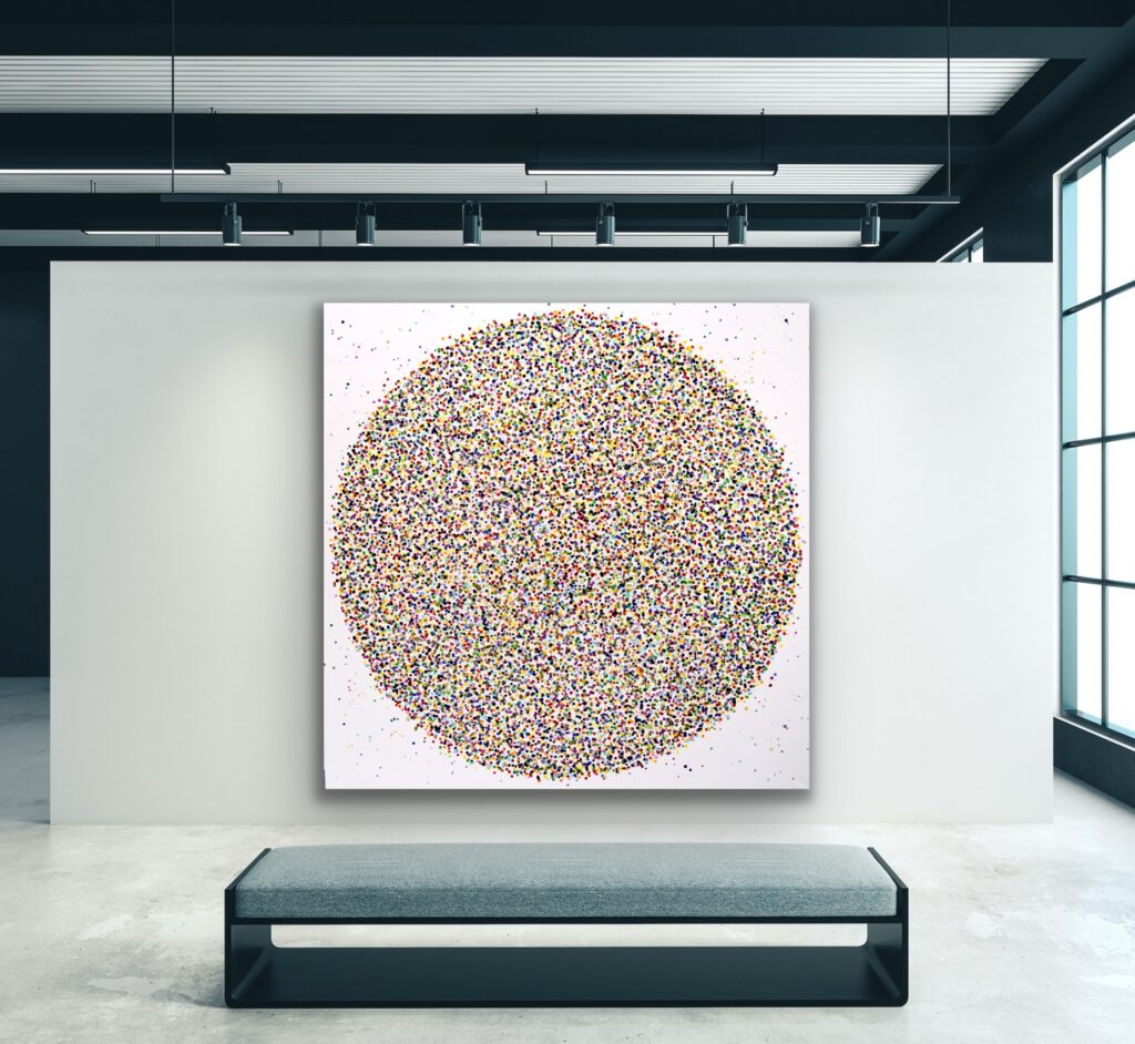 My message: Time is moving fast, and our minds are strongly influenced by the media and social platforms. I want people to pause their thoughts, calm down, follow the lines, journey with the circles, gaze at the dots and color fields in my works, and feel the vibrancy and allure of pure colors and common shapes.